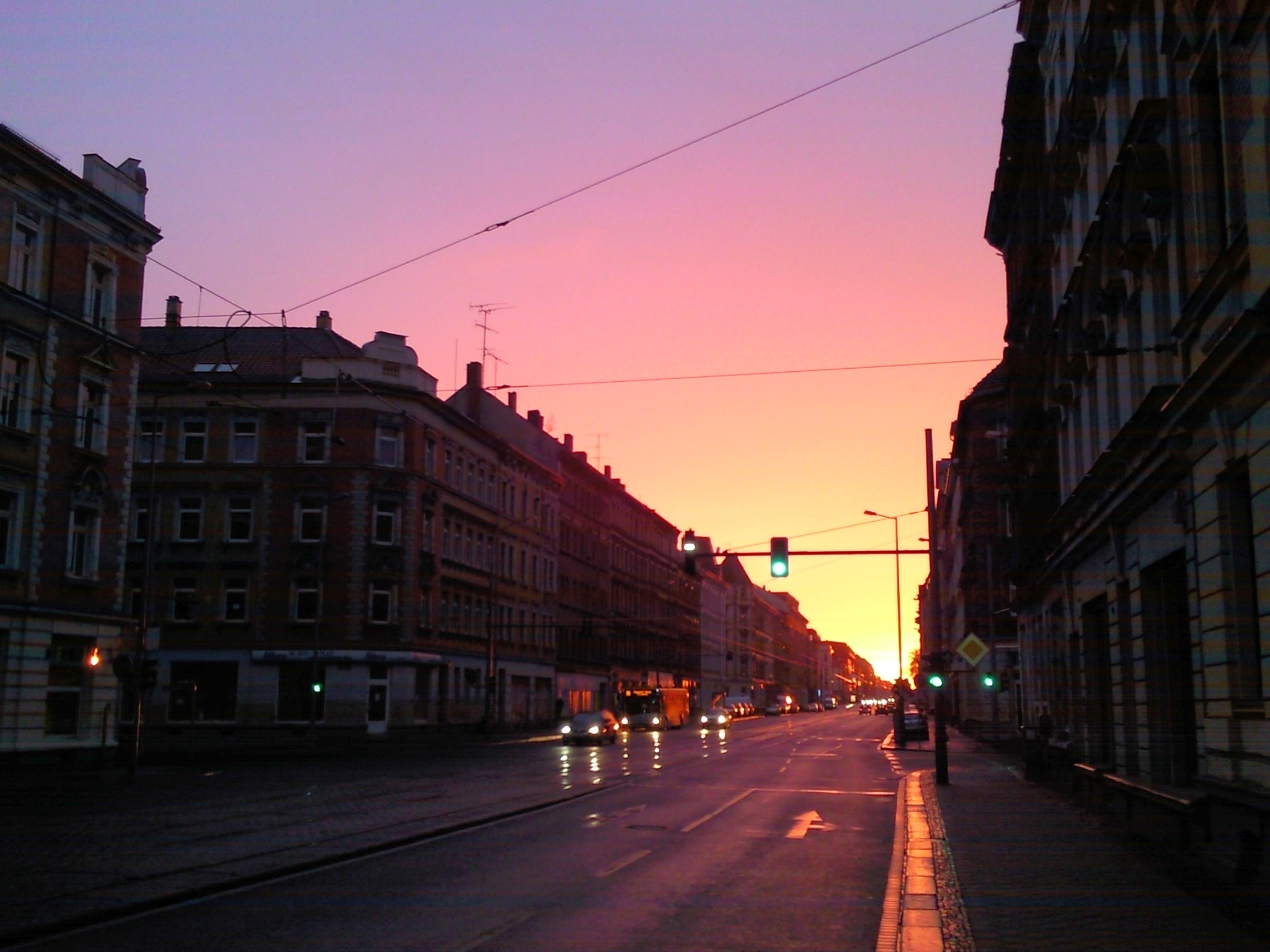 Nach skurrilen Details in den letzten Wochen, diesmal zum Wochenausklang etwas mehr Beschaulichkeit – urban-romantische Abendstimmung in rosarot auf der Georg-Schumann-Straße.