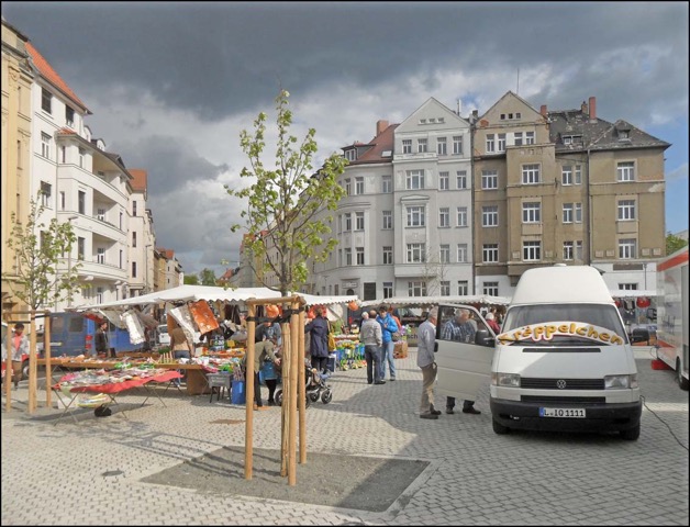 Zum Beginn des Wochenendes ein kleiner nostalgischer Rückblick. So alt ist das Foto nicht, aber bereits wieder Geschichte, denn der Markt auf dem Huygensplatz hatte nur ein kurzes Intermezzo. Dank Bernd Heyne gibt es aber immerhin einen fotografischen Beleg: Ja, Marktststände auf dem Huygensplatz hat es wirklich gegeben.
